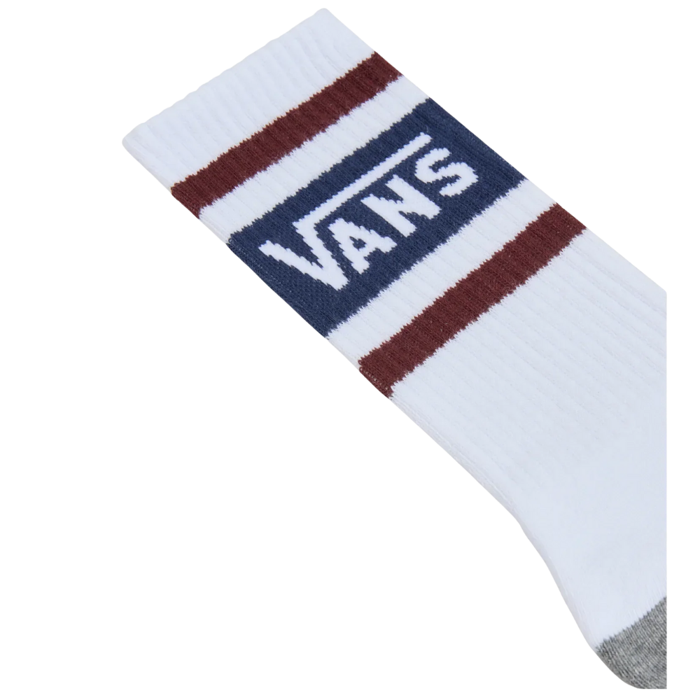 Die Vans Drop V Crew Socken in Bitter Chocolate verbinden hohen Tragekomfort mit einem markanten, modernen Design. Die mittelhohe Crew-Passform sorgt für einen sicheren Sitz, während kontrastierende Zehen- und Fersenbereiche stilvolle Akzente setzen. Das eingewebte Jacquard-Muster mit Vans® Logo verleiht den Socken einen unverwechselbaren Look. Dank des hochwertigen Materialmixes eignen sie sich ideal für den täglichen Gebrauch – ob in der Freizeit, beim Skaten oder unterwegs.