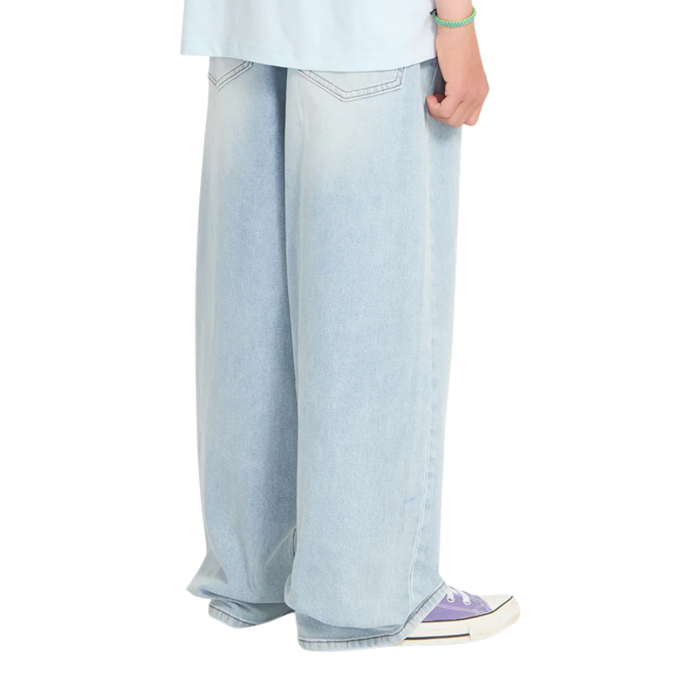 Die Chillow Denim Jeans von Volcom vereint lässigen Baggy-Fit mit nachhaltiger Verarbeitung. Der Relaxed Rise und die lockere Passform bieten Komfort, während das stark verwaschene Indigo-Denim mit Abschliff an Oberschenkeln und Knien einen coolen, leicht „used“ Look erzeugt. Typische Volcom-Branding-Details runden das Design ab. Die Herstellung verzichtet auf Stone Wash und Weichspüler und nutzt spezielle Entschlackungs- und Enzymwaschungen zur Reduzierung des Wasserverbrauchs.