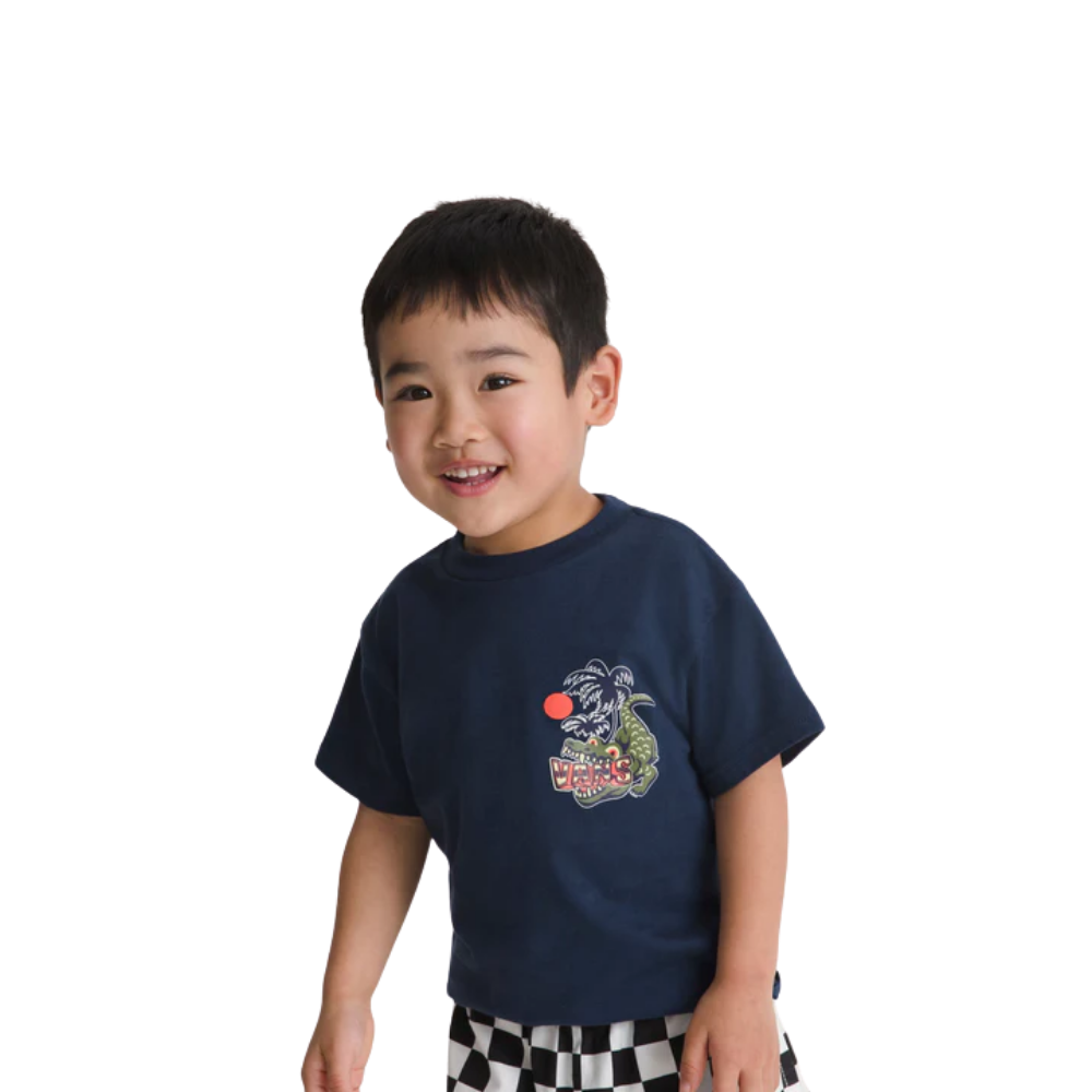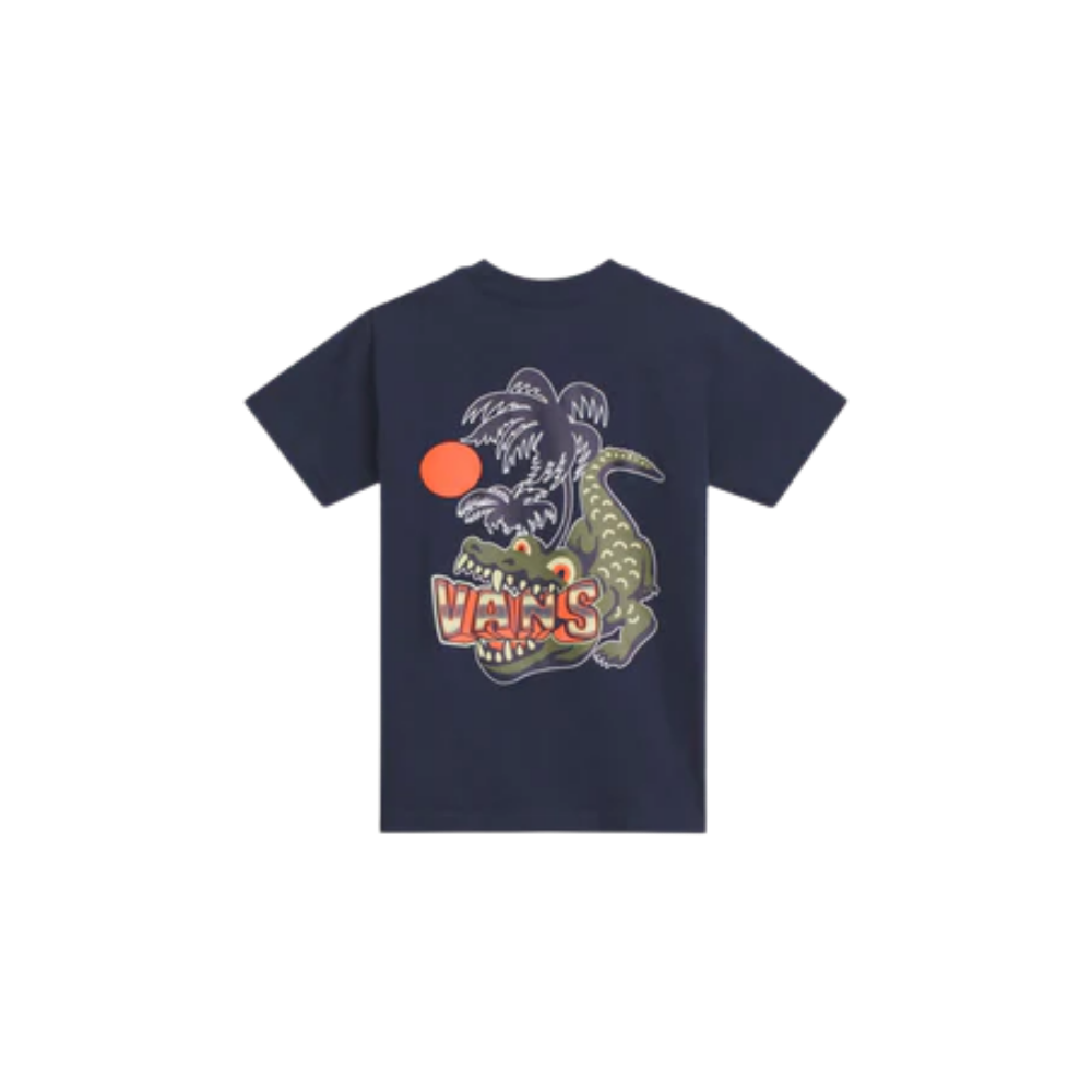 Das Vans Hangry Croc Kids T‑Shirt ist ein stylisches Kurzarmshirt für Kinder und bringt Vans‑Attitüde in den Alltag. Hergestellt aus weichem, hochwertigem Baumwolljersey bietet es angenehmen Tragekomfort und optimale Bewegungsfreiheit – ideal für Spiel, Freizeit oder Skate‑Abenteuer. Das auffällige Hangry‑Croc‑Motiv auf der Vorderseite verleiht dem Shirt einen coolen, unverwechselbaren Look, der Kids Spaß macht und Stil zeigt.