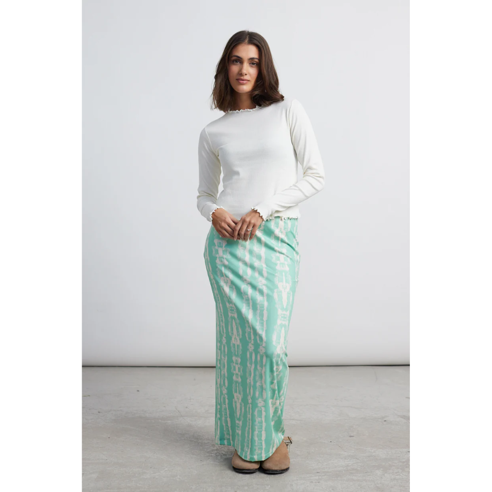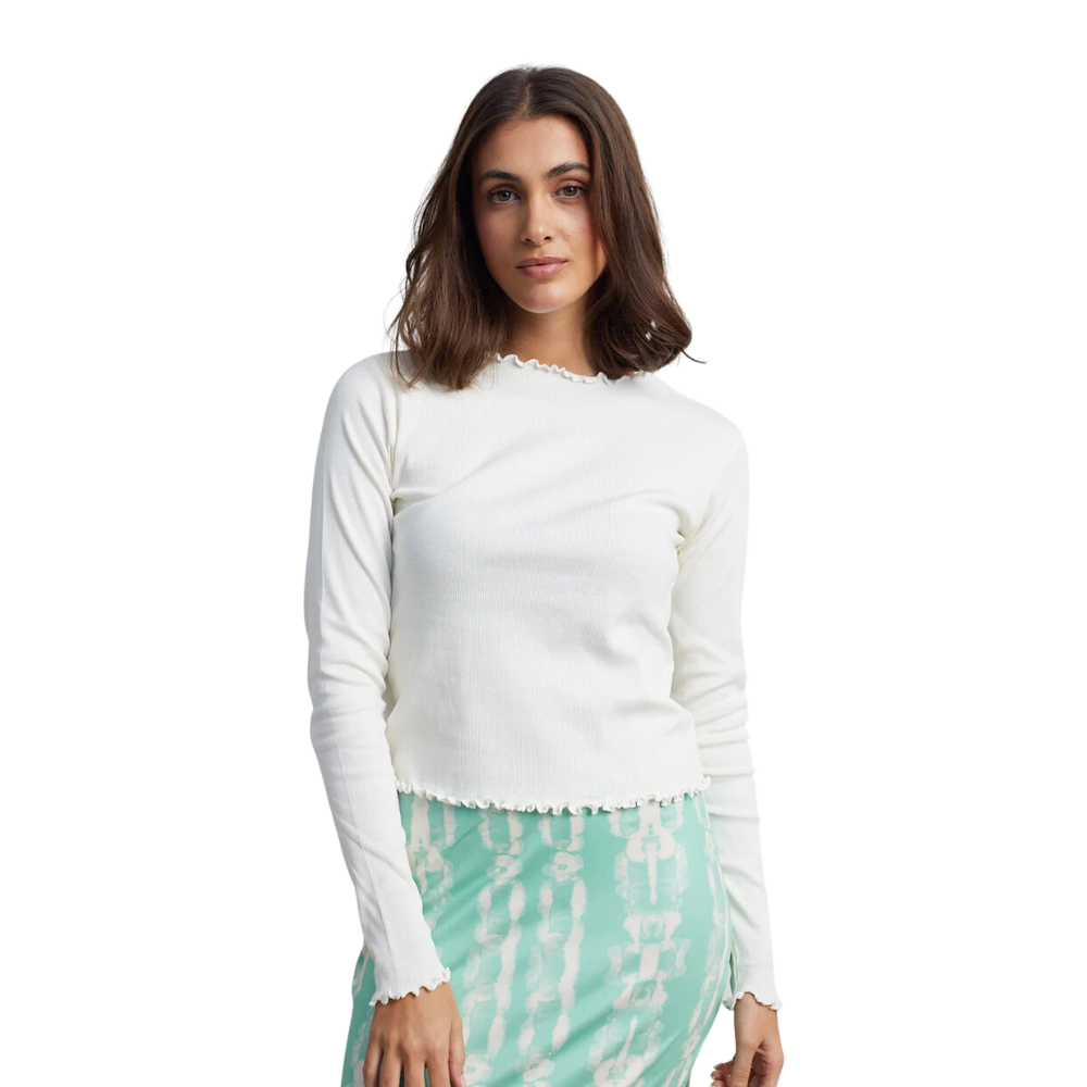 • Langarmshirt in Weiss mit gekräuseltem Saum