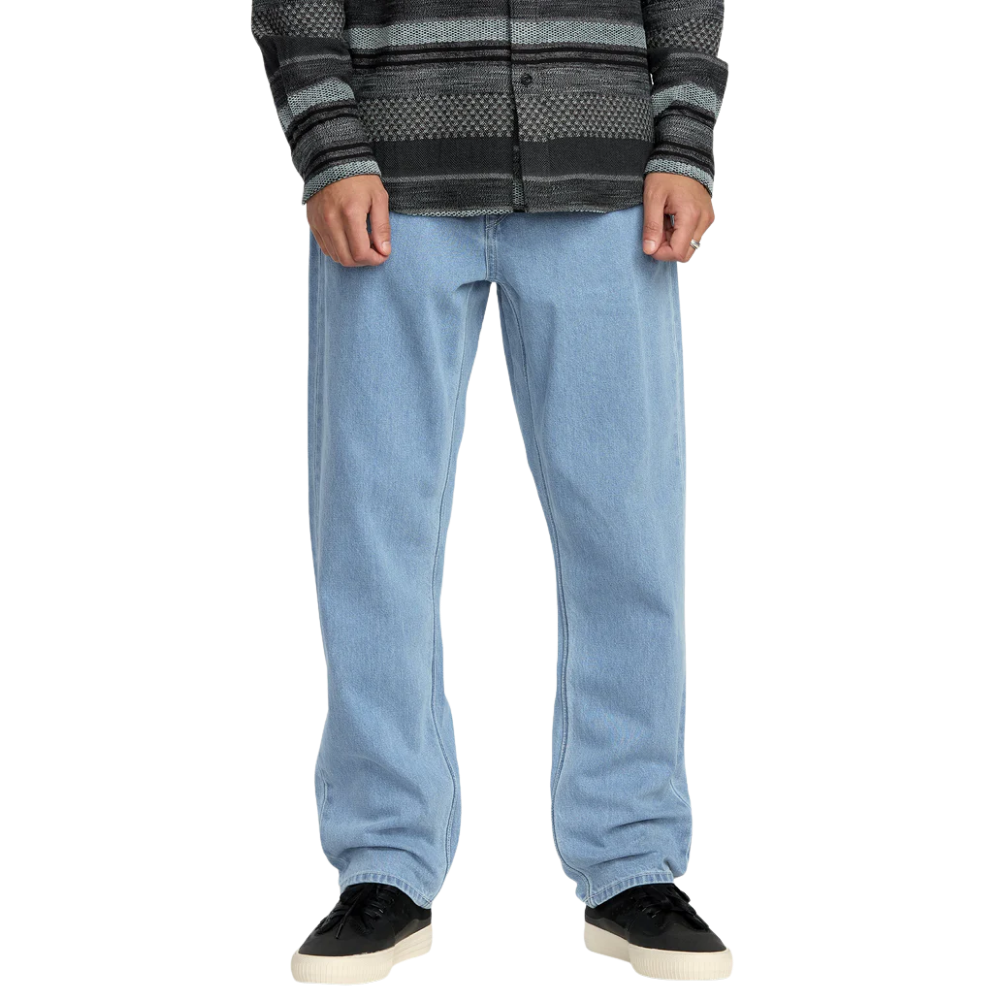 Die Volcom Fivedown Jeans für Männer kommt im Relaxed Tapered Fit und sitzt bequem unterhalb der Taille. Der helle Indigo-Denim mit mittelstarker Enzymwäsche sorgt für einen lässigen Look. Dank eines wassersparenderen Waschverfahrens ohne Stone Wash und Weichspüler ist die Jeans etwas umweltbewusster hergestellt. Typische Volcom Brand-Details runden das Design ab.