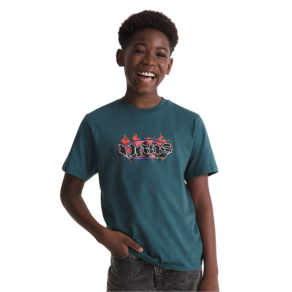 Das Kids Night Spark T-Shirt von Vans bringt Komfort und Style zusammen. Das leichte Jersey-Material sorgt für angenehmes Tragegefühl, während die auffällige Frontgrafik das Shirt zu einem echten Hingucker macht. Perfekt für aktive Kids, die beim Spielen, Skaten oder in der Freizeit auffallen möchten.