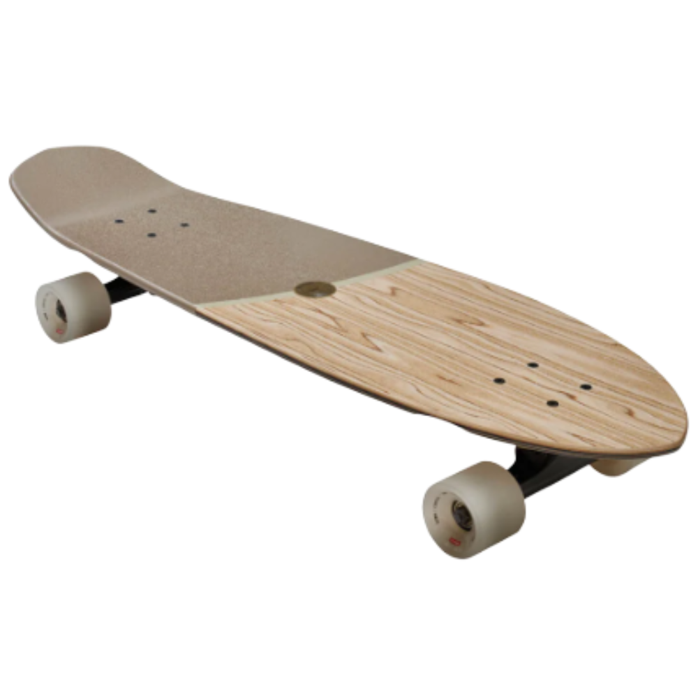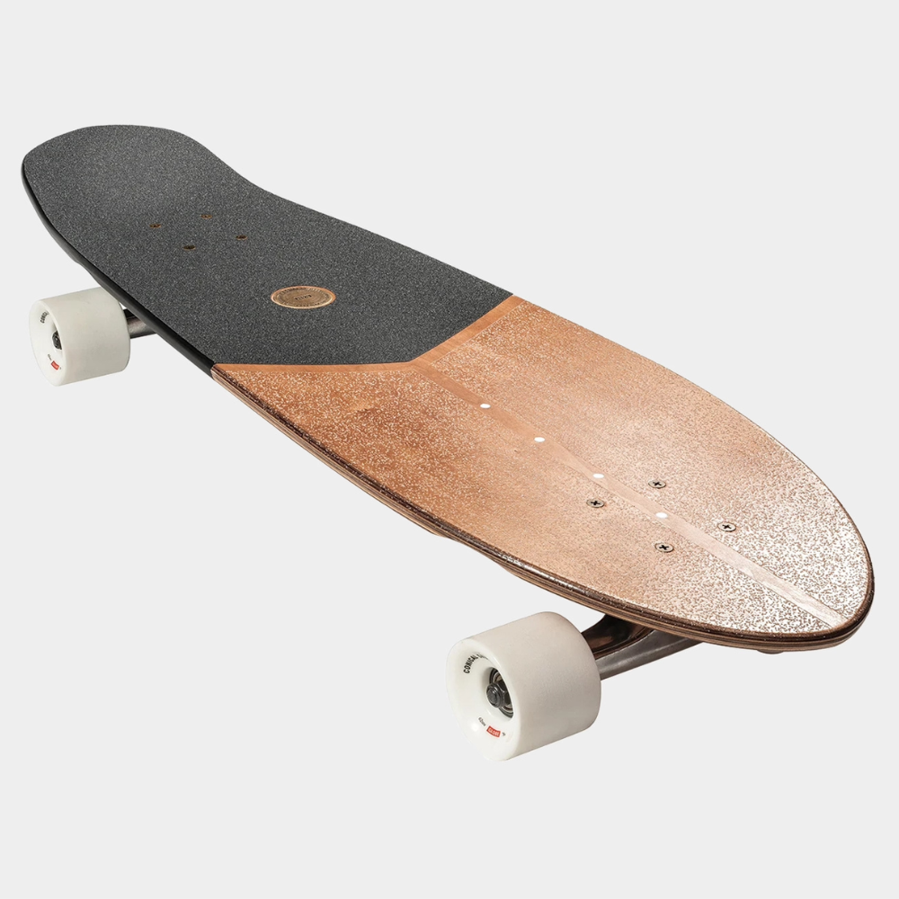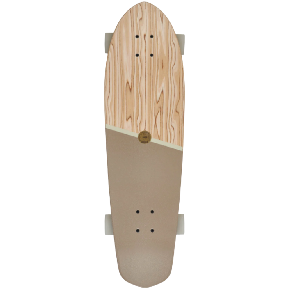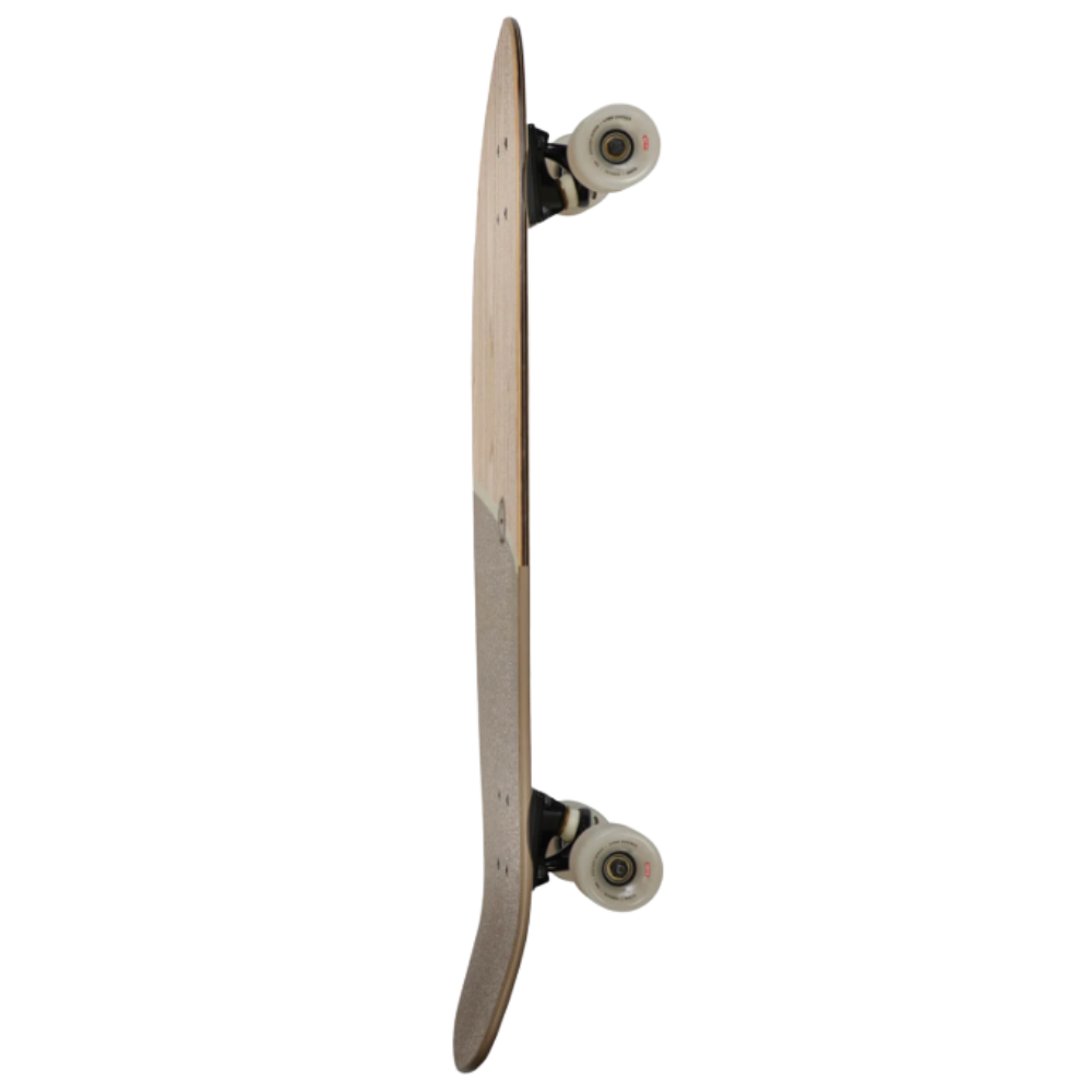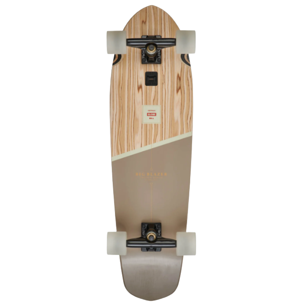 Medium diamond tail cruiser with built-in bottle opener and soft tapered wheels. The Big Blazer in size 32" in Olivewood/Stone colorway has a deck made of Olivewood + Resin-7 Hard Rock Maple with Mellow Concave with Kicktail. It also has 6.0" Tensor alloy trucks and 62mm 78a Conical Cruiser wheels with Clear broadcast grip and Embedded Metal badge.